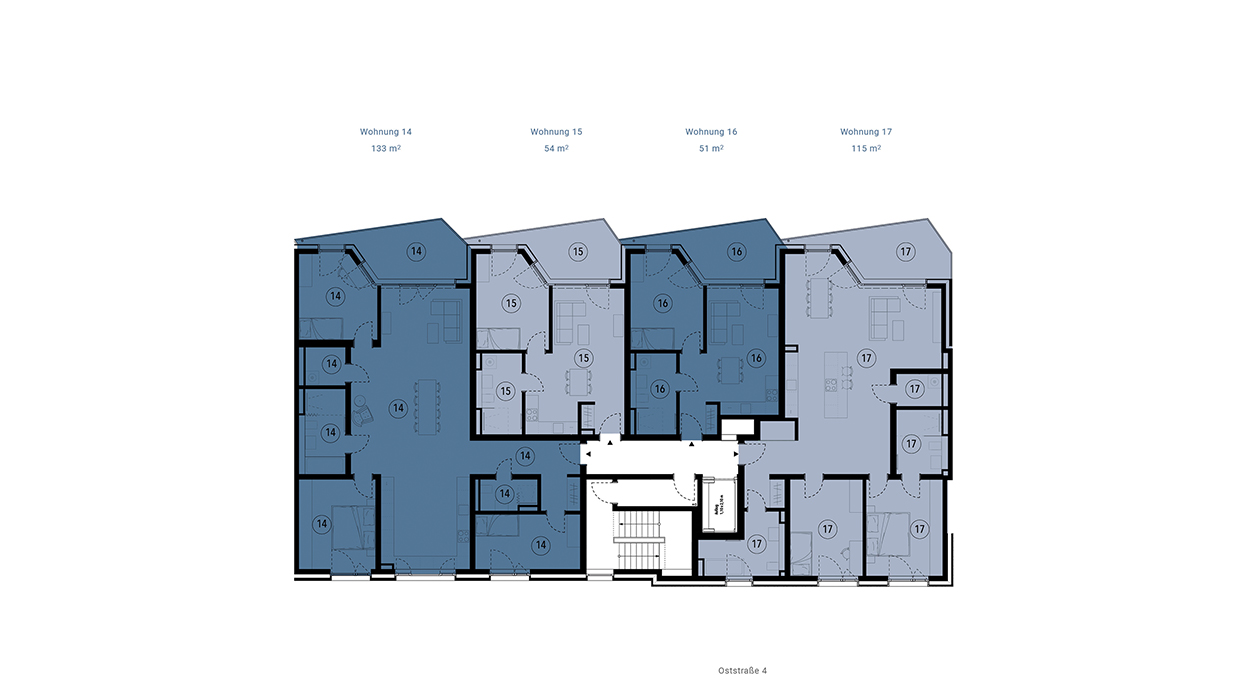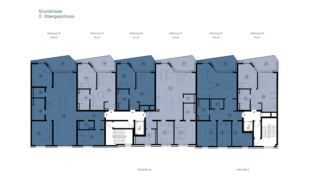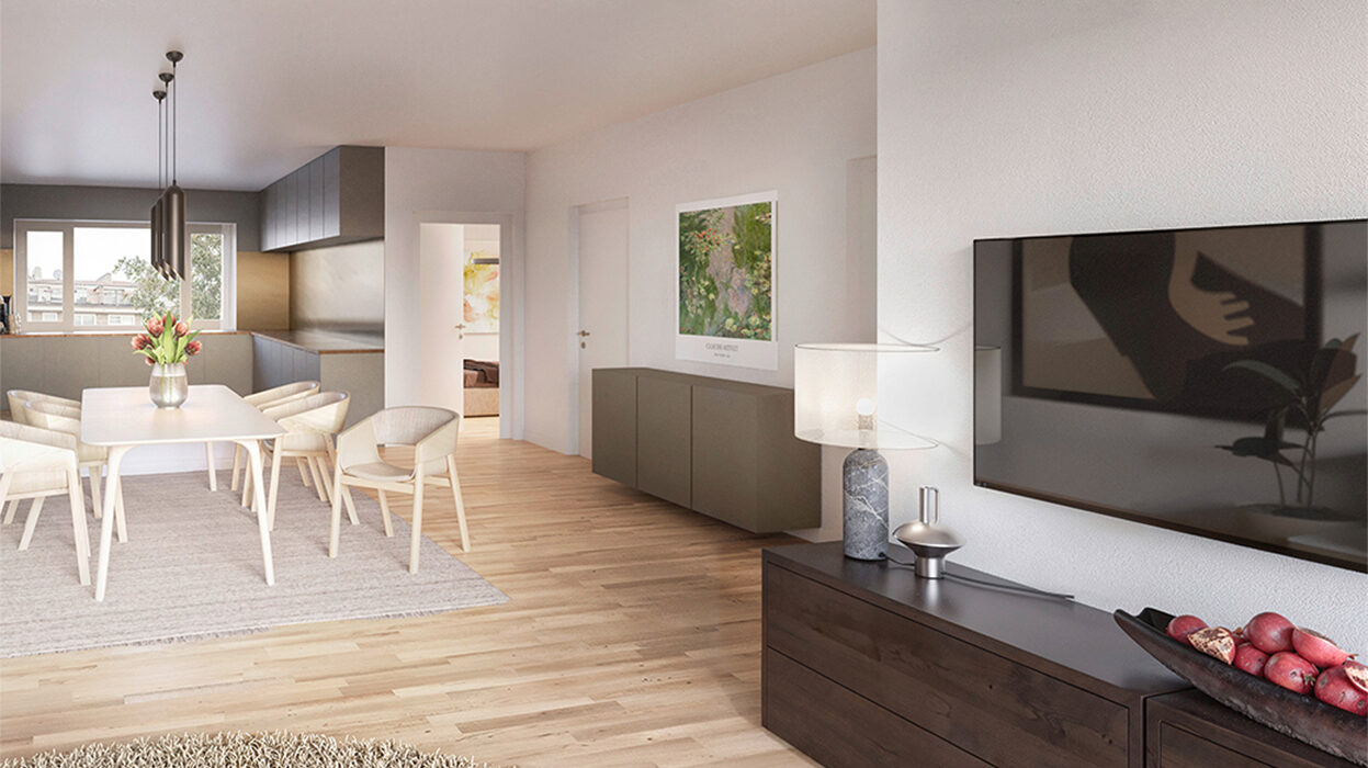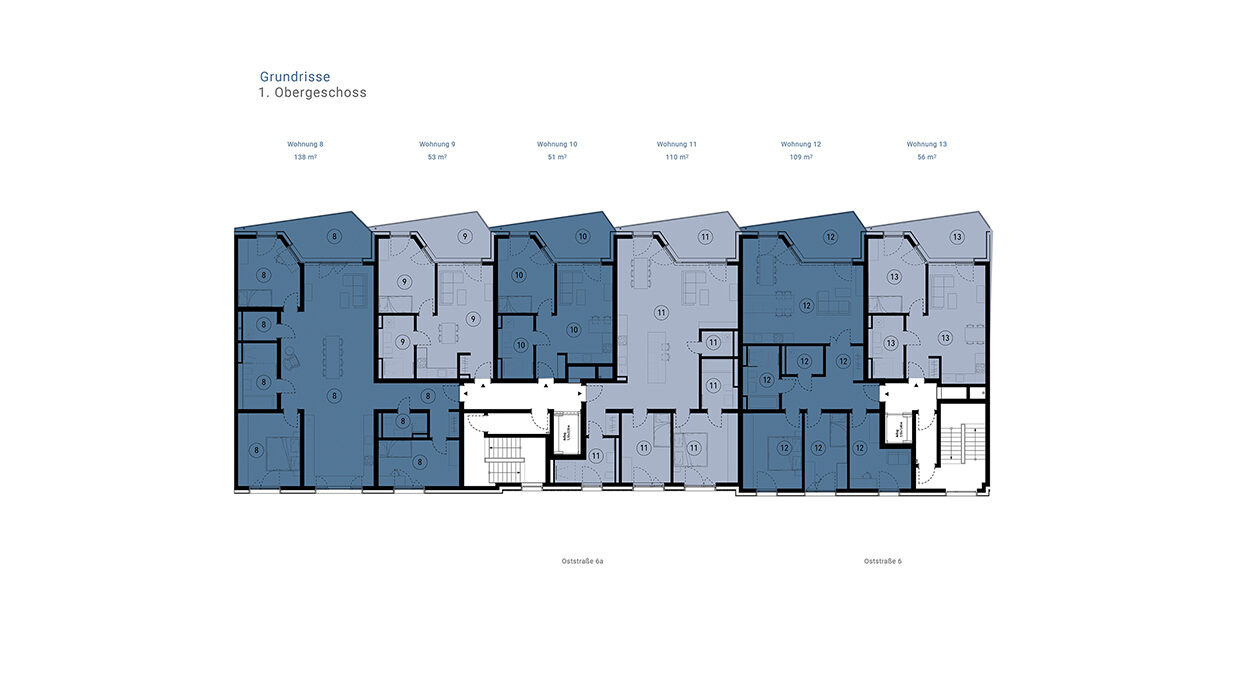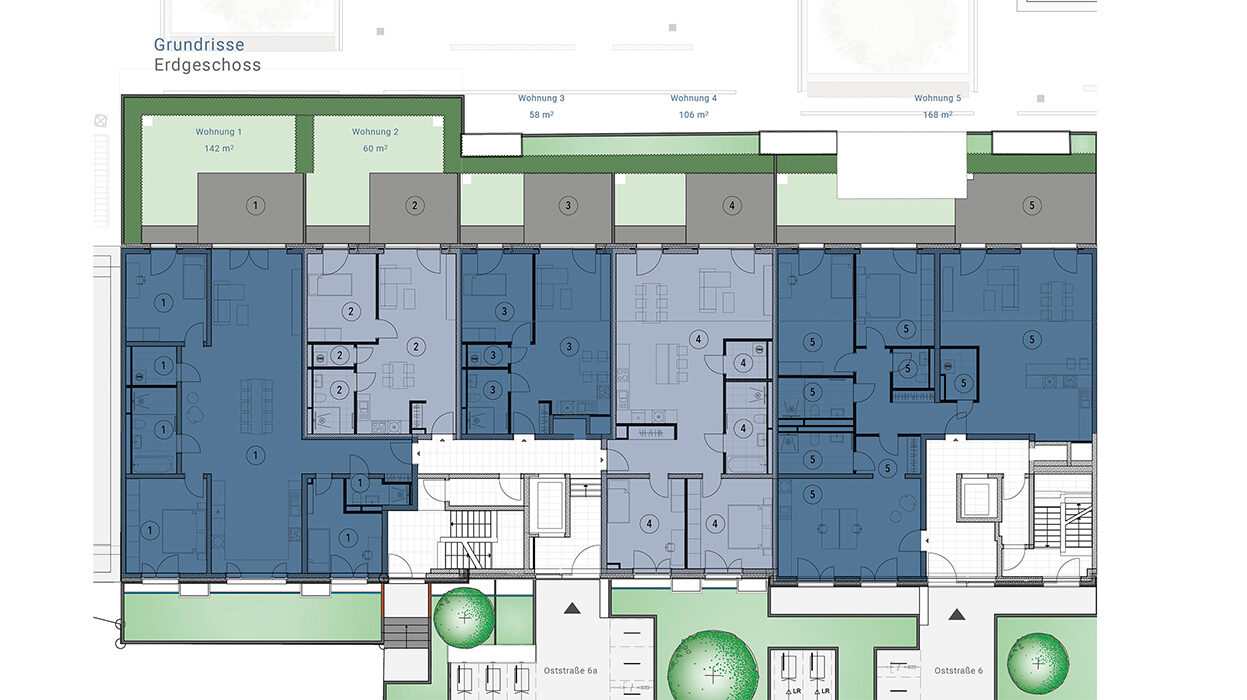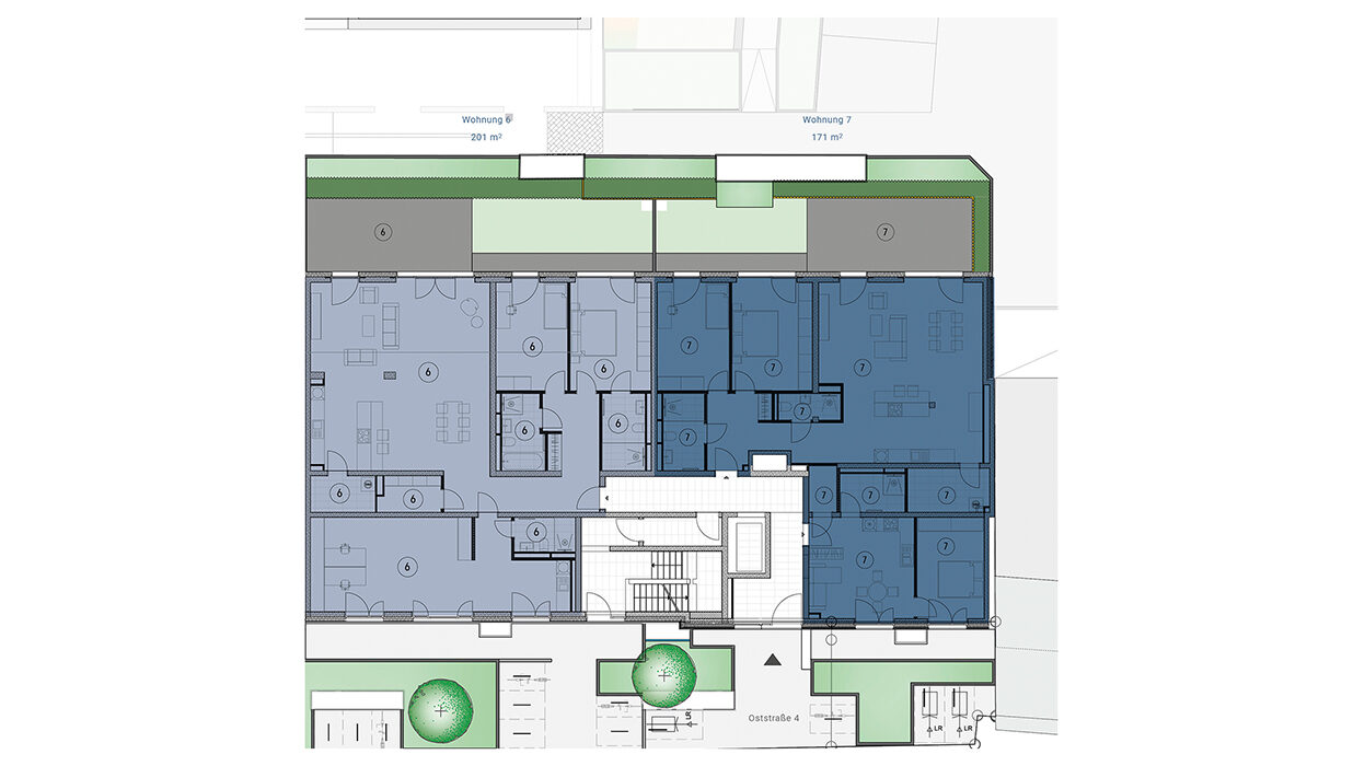 Das Mauritzviertel besitzt eine große Anziehungskraft für junge und jung gebliebene Menschen. Hier leben alteingesessene Nachbarn direkt neben jungen Familien in neuen Wohnprojekten und pflegen ein freundlich-interessiertes Miteinander. Kleine Parks und Spielflächen für Kinder kennzeichnen das Viertel und runden das nachbarschaftliche Miteinander ab. Jeden Sommer trifft sich die Nachbarschaft Mauritz-West zum 4tel-Fest vor dem ehemaligen Fernmeldeamt Münster in „Linnenbrinks Garten“. Der ehemalige Konzertgarten ist seit Generationen Anlaufpunkt für eine aktive Nachbarschaft. Zum Festtag öffnen Viertelbewohner ihren Garten, Hinterhof, Keller und Garage oder öffnen ihr Wohnungsfenster, um Besuchern des Festes Kaffee und Kuchen zu verkaufen oder ihre Werkstätten zu zeigen. Die lebendige Einzelhandelsstruktur an der Warendorfer Straße wird seit 1981 ergänzt durch das Cinema, das beliebte Programmkino mit angebundener Gastronomie. Kleine Weinstuben, Cafés und Restaurants sind beliebte Treffpunkte für Bewohner des Viertels und seine Gäste. Für die Gastronomie im Erdgeschoss des ehemaligen Fernmeldeamts an der Rudolfstraße 1 konnten wir das „Café Classique“ gewinnen, den kreativen Tortenspezialisten, der seit 20 Jahren Münsters Kaffeetafeln bereichert. Mit dem St. Franziskus Hospital haben sich im Viertel und auch direkt an der Oststraße viele medizinische Einrichtungen, Praxen, Apotheken und Anbieter von Gesundheitsdienstleistungen angesiedelt. Vom Rudolf Carree aus ist das Hospital zu Fuß zu erreichen. In diesem zweiten Bauabschnitt der Gesamtentwicklung „Rudolf Carree“ wird ein sechsgeschossiges Mehrfamilienhaus mit insgesamt 50 Wohnungen inkl. Keller errichtet. Auf dem Grundstück befinden sich 11 Tiefgaragenstellplätze, die einen Teil der bereits im ersten Bauabschnitt (47 Wohnungen) erstellten Tiefgarage mit insgesamt 110 Stellplätzen bildet. Das Gebäude füllt eine Baulücke, an die auf beiden Stirnseiten bestehende Gebäude angrenzen. Der Neubau verfügt über drei Treppenhäuser, die aufgrund zusätzlicher Aufzugseingänge insgesamt über drei Hauszugänge erschlossen werden. Zusätzliche werden drei untergeordnete Ausgänge aus den Treppenhäusern als zweiter Rettungsweg erstellt.